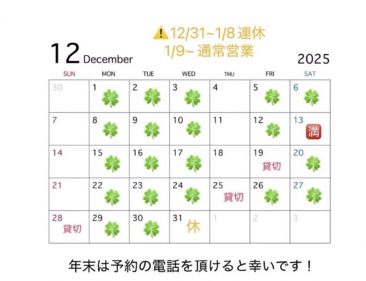 年内のよつば営業予定です🏮 🍀マークのところはまだご予約いただけます!! 個室もありますのでぜひお問い合わせください💨 さてと、12/15(月)は、居酒屋よつば10年、クローバーコンパニオン15年になります🙂 どうにか大台突破することができました🚩 昨年10周年のイベントをよつばで開催しましたが、今年も何かしらお礼をさせていただきます💕 &n […]…