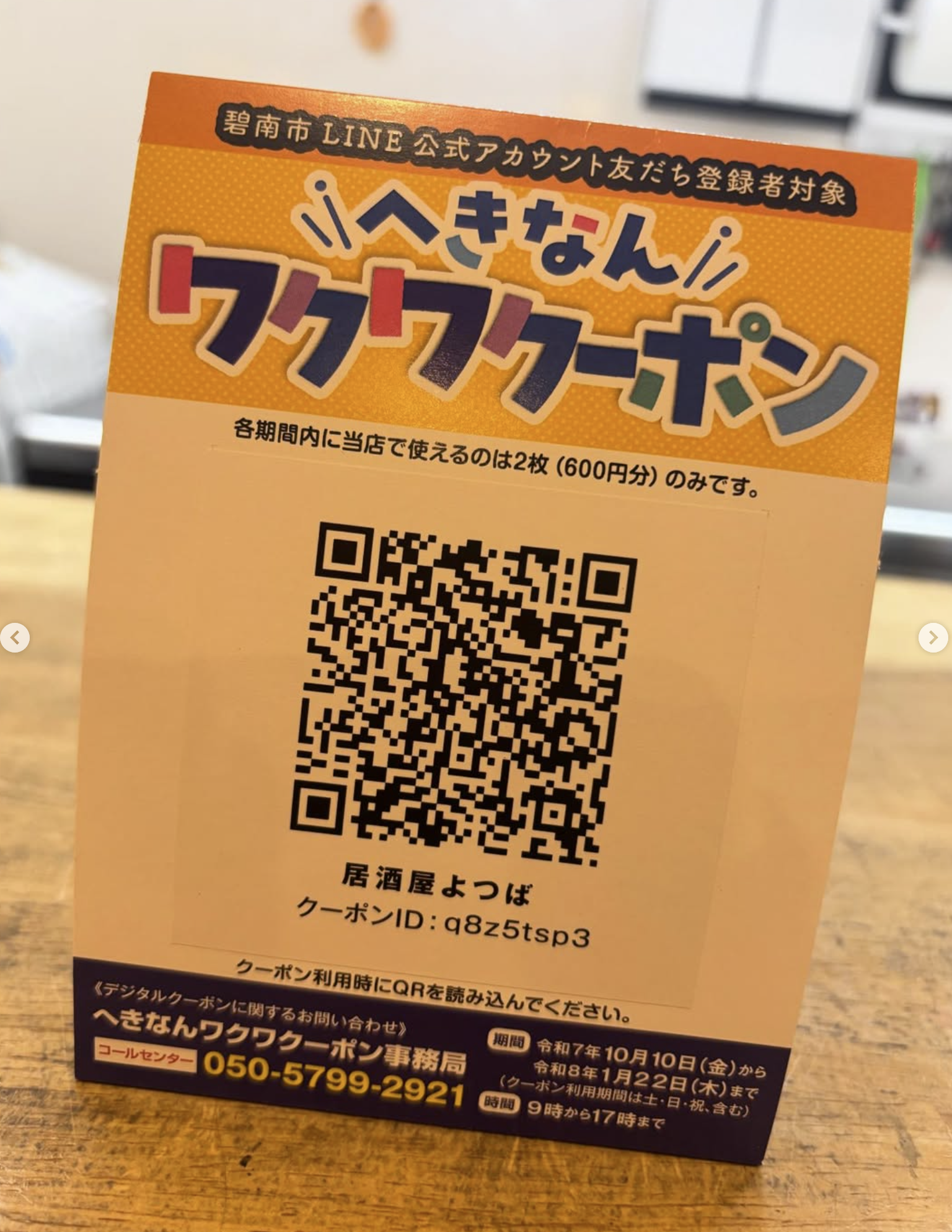 碧南市LINE公式アカウント登録して、ぜひクーポン使ってお得に飲んで🍺お食事しに来てくださーい🍚